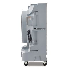 Beat the humidity and the heat with this Portable Evaporative Cooler, a low-cost, solution to keeping spaces cool. Water and forced air are combined in this machine to reduce air temperatures by as much as 26° F. Units are equipped with thick Kraft paper that is coated in water from the pump. The coolers come with a convenient remote control and a micro-computer control panel with easy-to-read LCD display. Built-in timer allows cooler to be programmed to turn on or shut off at preselected times. Also included is an Auto-Shutoff feature for pump motor when water levels drop below the limit. 36" diameter fan operates at three selectable speeds, and a thick cooling pad ensures reliable heat absorption. Four rubber casters with brakes allow easy mobility along with built-in forklift pockets.